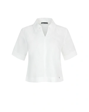 CLASSIC WHITE LINEN SHORT-SLEEVED SHIRT WITH A COLLAR AND HIDDEN ZIPPER