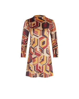 ELEGANT DRESS WITH GEOMETRIC PRINT IN EARTHY TONES