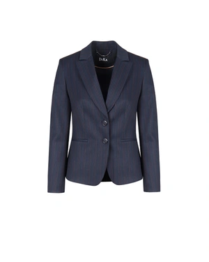 Elegant business blazer with long sleeves, single-breasted fastening and lapels, in navy blue with very delicate fine stripes. The model can be combined with trousers, a skirt or a dress from the collection.
