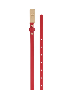 Elegant leather belt in red, with a gold buckle with DKKD logo, smooth top grain leather, width 1 cm