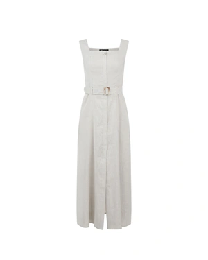 LONG LINEN AND VISCOSE DRESS WITH A BELT AND HIDDEN BUTTONS IN ECRU COLOR