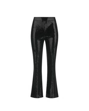 Straight-leg model made of fabric with fine black sequins, part of the party collection for special occasions and events, can be paired with matching blazer from the collection