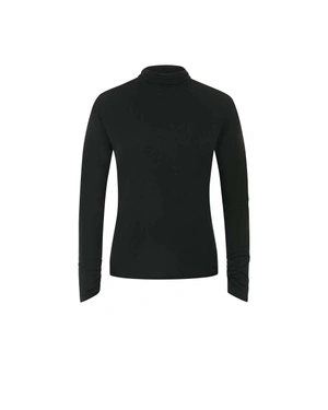 Black turtleneck with long sleeves, regular fit, made of lyocell and virgin wool. The wool used is of guaranteed origin, mulesing-free, certified according to international standards ensuring sustainable sourcing and ethical practices.