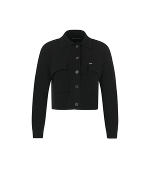 BLACK VISCOSE CARDIGAN WITH COLLAR AND FRONT POCKETS