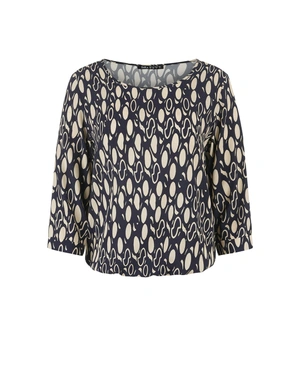 Elegant blouse in 100% viscose with round neckline, 7/8 sleeves and regular fit. The fabric provides natural softness and comfort, while the print adds a distinctive yet balanced accent suitable for everyday wear.