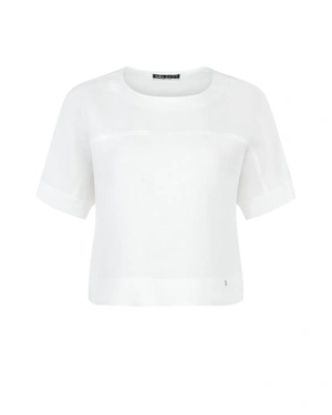 WHITE LINEN SHORT-SLEEVED BLOUSE WITH A CLEAN DESIGN