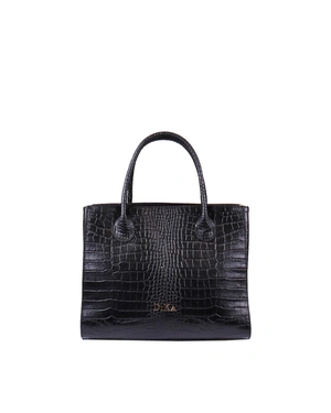 ტყავის ჩანთა ნიანგისებრი ეფექტით. მოდელს აქვს: ორი მოკლე სახელური, ერთი გრძელი მოხსნადი სახელური, ორი განყოფილება ოქროსფერი ლითონის ელვა–შესაკრავით, ერთი შიდა ჯიბე ელვა–შესაკრავით და ორი ღია ჯიბე ტელეფონის ჩასადებად. განზომილებები: 30x13x27 სმ