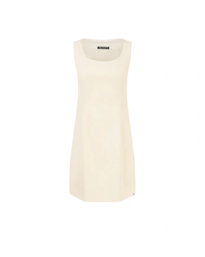 ელეგანტური ქალის კაბა, დამზადებული ბამბისა და ვისკოზის დაბალანსებული ნაზავით, პოლიამიდთან შერწყმული - გაზრდილი გამძლეობისთვის. ბამბა უზრუნველყოფს ბუნებრივ კომფორტს, ხოლო ვისკოზა სილუეტს რბილს და მსუბუქ მოძრაობას სძენს. მოდელი მრგვალი დეკოლტეთი, რეგულარული მოყვანილობით, უსახელო, შესაფერისია კოლექციის პიჯაკთან შესახამებლად.