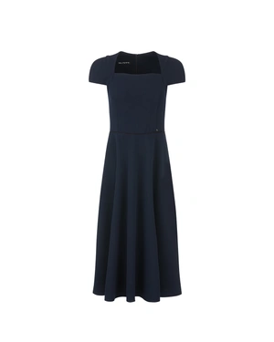 მოკლემკლავიანი დიზაინი, ზედა ნაწილში ტანზე მომდგარი და ქვედა ნაწილში გაშლილი, ტრაპეციის ფორმის დეკოლტით და მუხლამდე სიგრძით. ქსოვილს აქვს ოდნავი ელასტიურობა.