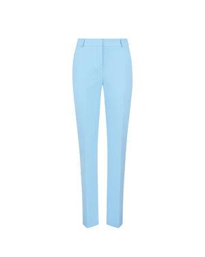 ელეგანტური ღია ცისფერი საქმიანი შარვალი კონუსური ფეხებით და დაპრესილი ნაკეცებით. შეგიძლიათ შეუხამოთ კოლექციის პიჯაკს. ქსოვილი შეიცავს გადამუშავებულ პოლიესტერს. გადამუშავებული პოლიესტერის გამოყენება ამცირებს ნარჩენებს და ზოგავს რესურსებს არსებული მასალების ხელახალი გამოყენებით ახალი ნედლეულის მოპოვების ნაცვლად, რაც იწვევს ნახშირბადის გამონაბოლქვის შემცირებას და ენერგიისა და წყლის უფრო ეფექტურ გამოყენებას წარმოების პროცესში, ამავდროულად ხელს უწყობს ცირკულარულ ეკონომიკას.