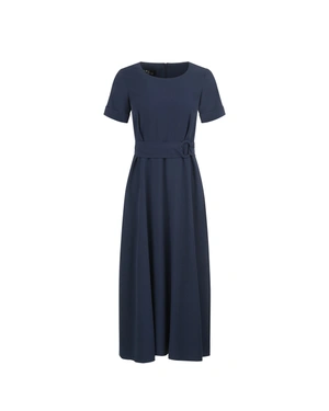 ვისკოზის კაბა მრგვალი დეკოლტეთი, მოკლე სახელოებით და სტანდარტული ჭრით, ოდნავ გაშლილი ქვედა ნაწილში, კოჭებამდე სიგრძის, ქამრით და ბალთით, ზურგზე ელვა შესაკრავით.