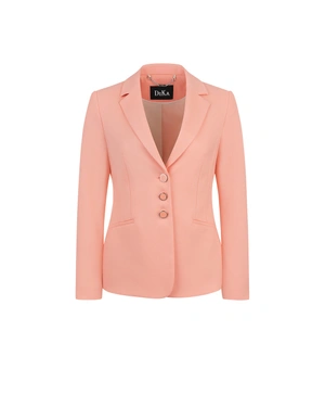 ქალის პიჯაკი ქალური სილუეტით, საყელოებით და ატმისფერ-ვარდისფერში, სტანდარტული მორგებით. გამოდგება ელეგანტური ოფისის კომბინაციებისთვის, შეგიძლიათ შეუხამოთ კოლექციიდან შერჩეულ შარვალს, კაბასა და შორტს.