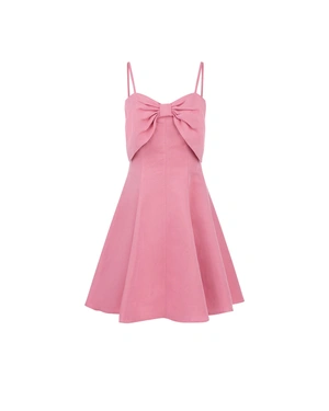 რომანტიკა ვარდისფერში! ეს კაბა მომხიბვლელს ხდის მკერდზე აქცენტირებული ბაფთით და გაშლილი ქვედაბოლოთი, რომელიც სხეულს მიჰყვება. ვისკოზისა და სელის ნაზავი კეთილშობილ იერსა და სინაზეს სძენს მას, რაც ნებისმიერი ზაფხულის შემთხვევისთვისაა შესაფერისი.